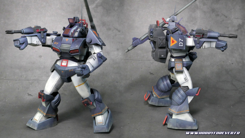 Pour la peinture de ce Dougram, je suis parti sur un résultat patiné, les belles images de la notice étant d’ailleurs assez inspirantes. Je pensais tout d’abord faire un travail en preshading pour donner un peu de volume aux pièces. Malheureusement les couleurs choisies étant au final assez couvrantes, tout le travail de preshading s’est trouvé effacé. Si bien que j’ai du reprendre le travail en postshading, ce qui au final est une technique qui me convient bien. Pour les couleurs je me suis éloigné quelque peu des teintes officielles avec :