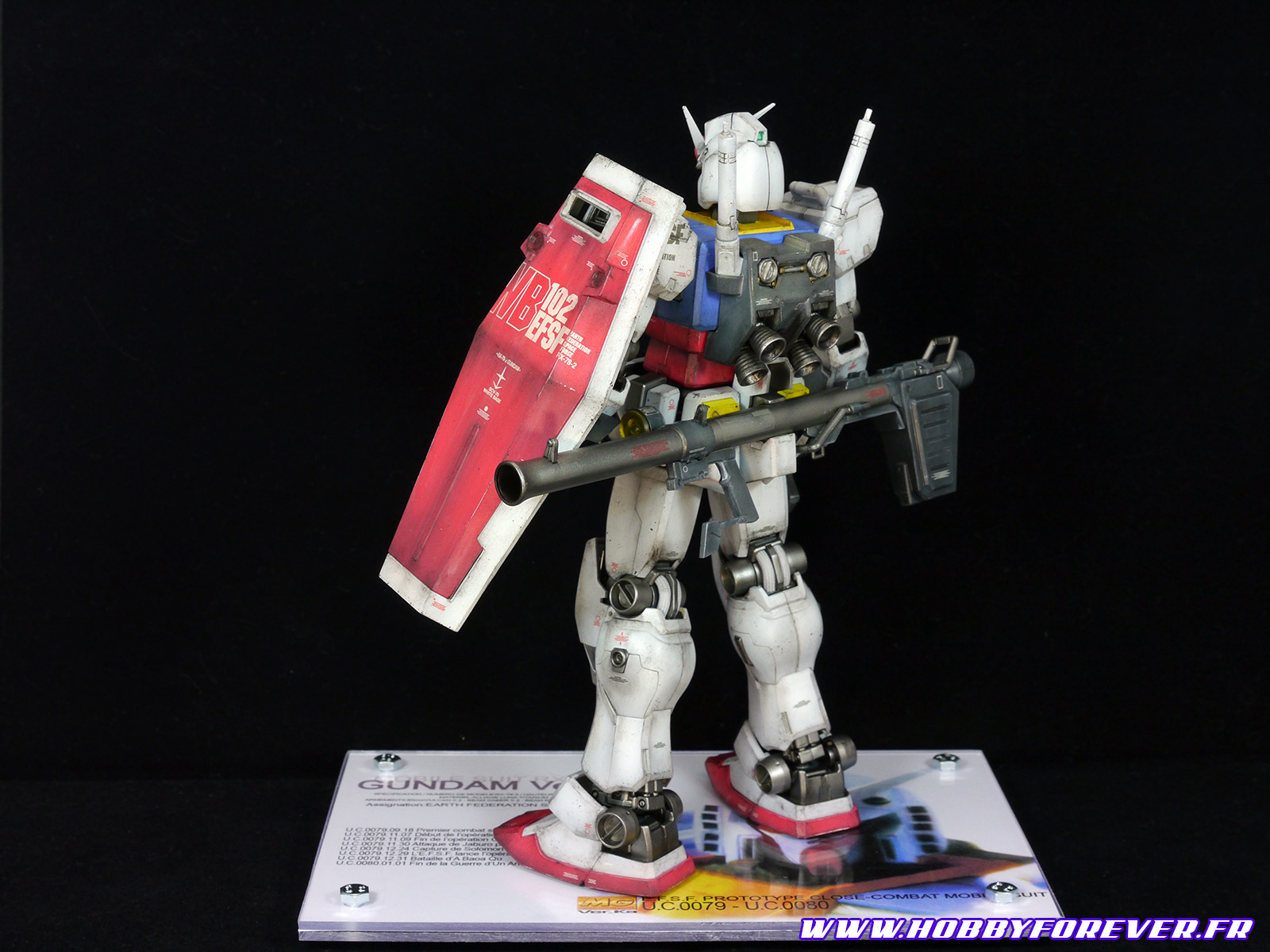 Voici ma dernière création en date, un “classique” puisqu'il s'agit de ce bon vieux RX-78-2 Gundam, ici dans sa version Ka. Les versions Ka sont à présent bien connues des amateurs de gunpla, puisque plusieurs Master Grade sont sortis sous ce “label” qui nous indique qu'il s'agit d'une version (re)designé par Katoki Hajime. Il faut savoir que ce RX-78-2 est le premier MG à porter la mention Ka. De plus son design a une petite histoire puisque la première illustration du redesign Ver.Ka du RX-78-2 Gundam a fait son apparition pour la première fois dans le manuel du tout premier HG de Bandai : le HG RX-78-2 Gundam, sorti en 1993. Voilà, ça c'était pour la minute “histoire du gunpla” :)